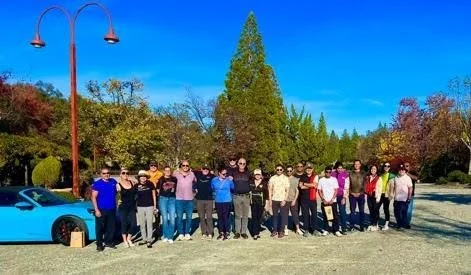 Sunday would take us to world class Ironstone winery in Murphys. Our start time would be later in the morning ( 1000am ) allowing folks to sleep in a bit. This days routing would partially re-trace our Volcano, Pioneer, West Point, Wilseyville route with new sections Railroad Flat Road thru Mountain Ranch to San Andreas. From here we pickup historical CA Hwy 49 to Angels Camp, the taking the fun route to Murphys ( and Ironstone ) via Murphys Grade Road. A wonderful well paved and engaging section to end our official part of this outing. Ironstone gave us our own tasting bar for their offer ( French and Italian clones ). While their GGR member Rick Slovin introduced me to Ironstone founders John and Gail Kautz and their son Stephen ( current Winery CEO ). As a thank you, John & Gail signed their book “ The Kautz Family: A Legacy of Wine “ for us. A wonderful, engaging and hospitable couple sharing their stories. Stay tuned for an event at Ironstone featuring Porsche in 2026.